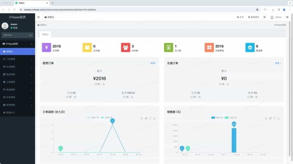 用户租赁商品缴纳租金及押金,员工端可操作商品出库和归还