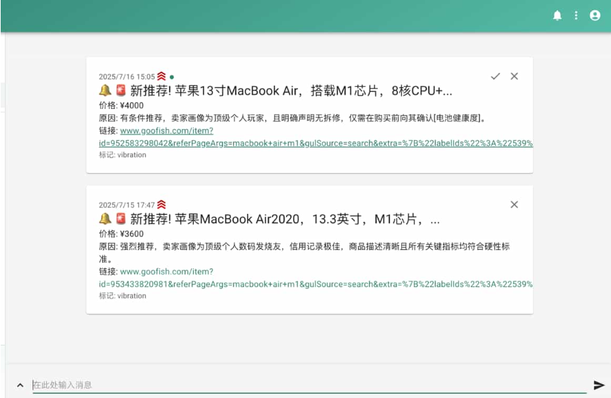 即时通知: 支持通过 ntfy.sh、企业微信机器人和 Bark,将符合AI推荐的商品立即推送到你的手机或桌面。